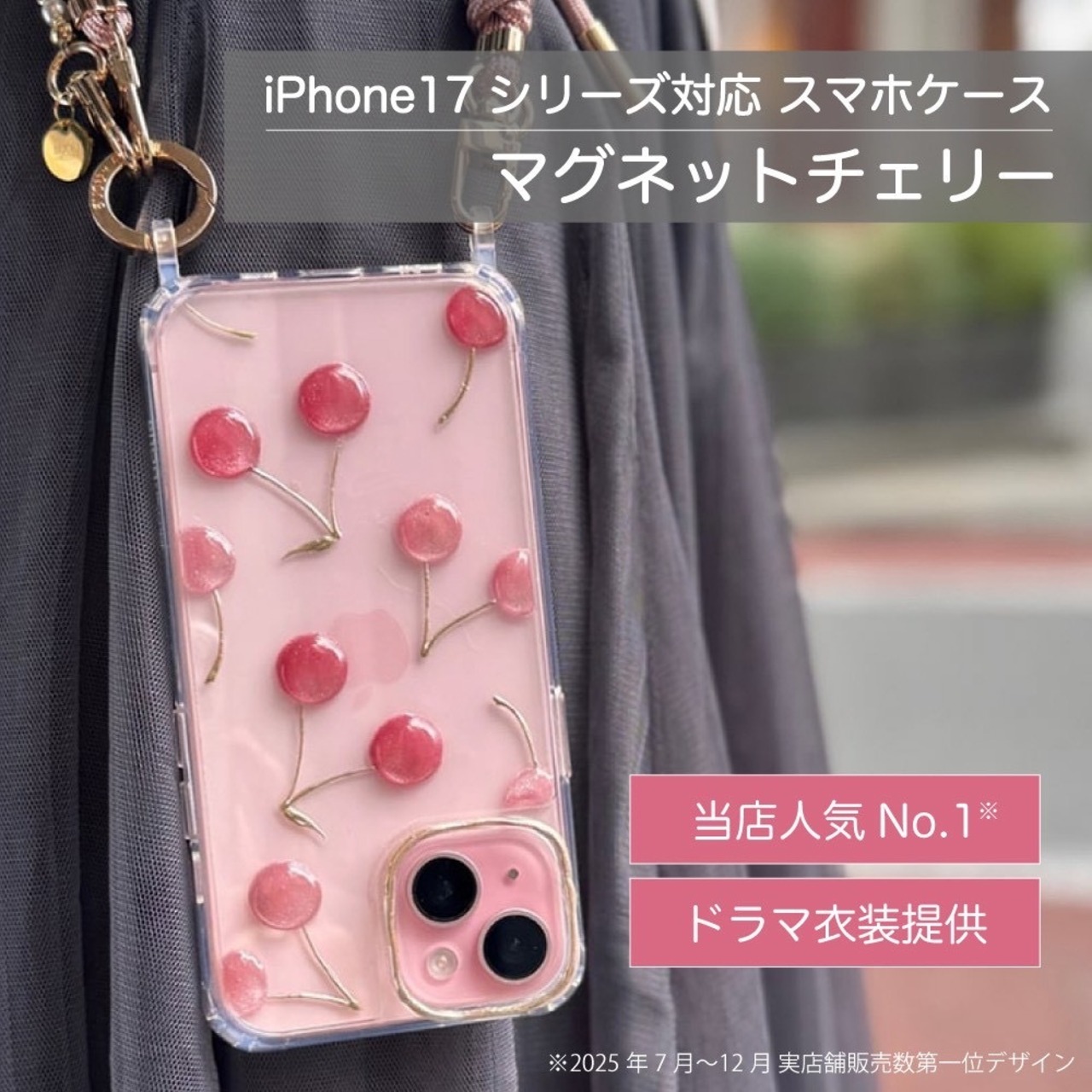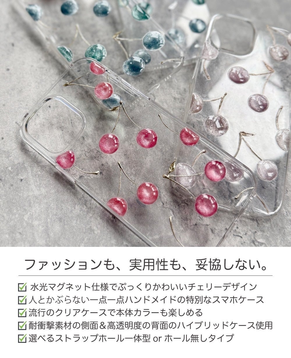 【人気No.1】マグネットチェリー|ぷっくり立体ジェルの大人可愛いスマホケース (iPhone全機種対応/推し活カラー7色/ドラマ衣装提供品)