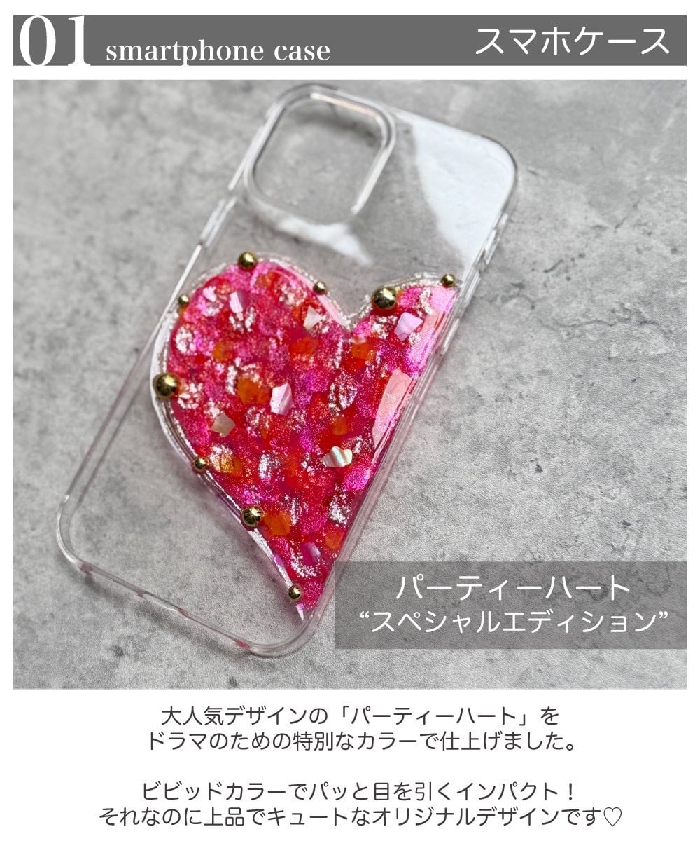《ドラマ着用》スマホケース【party Heart-Special edition-《vivid red》】iPhone17/iPhone17Pro/iPhone17ProMax/ iPhone15/iPhone15Pro/iPhone15ProMax/iPhone14 /iPhone13/12/X 等全機種対応