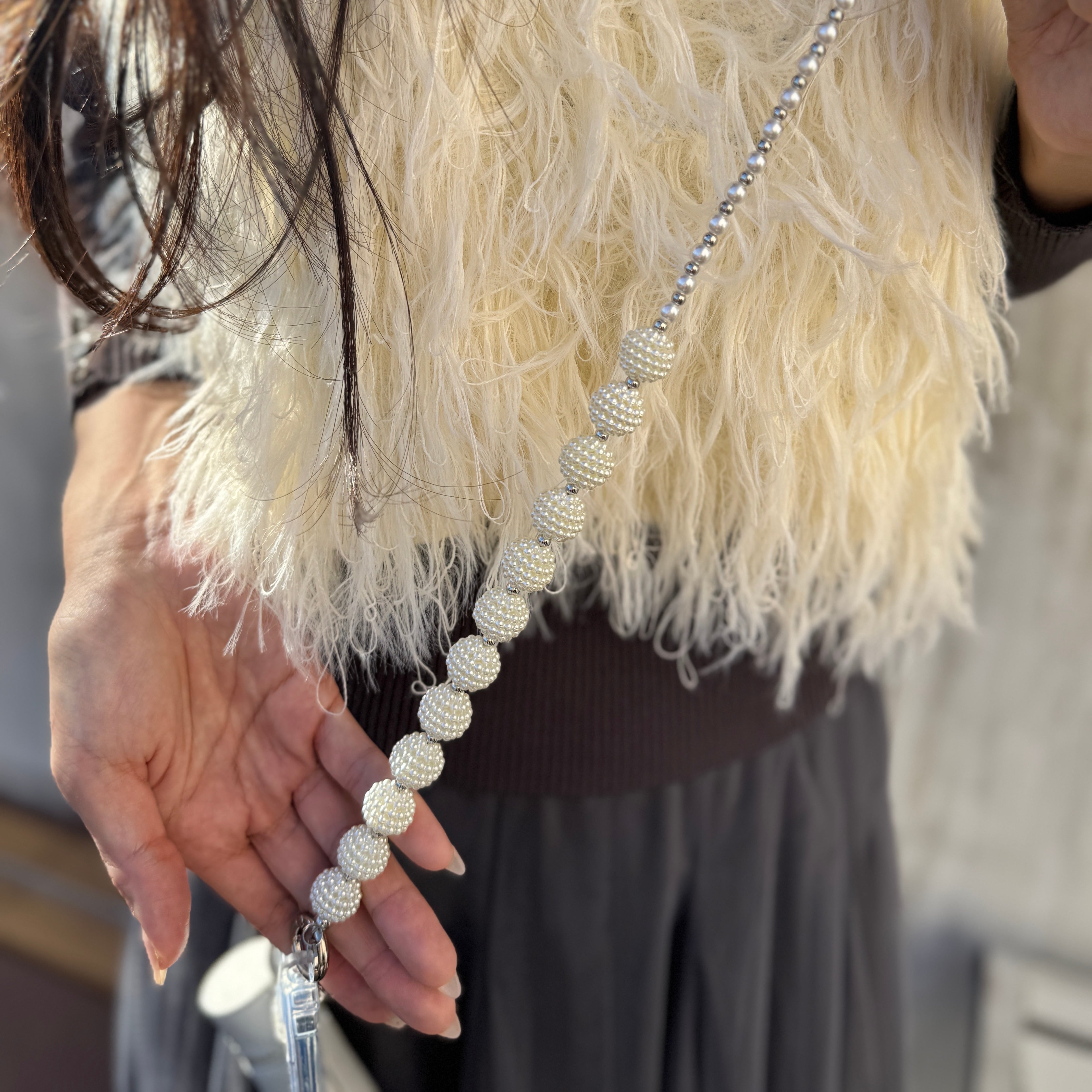 【スマホショルダーストラップ《華奢パール×パヴェパール》120cm】